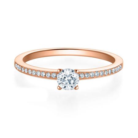 Verlobungsring – Solitaire, 1 Diamant, 2 Brillianten
