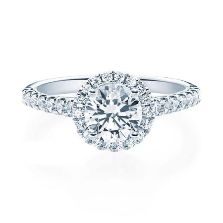 Verlobungsring – Solitaire, 1 Diamant, 32 Brillianten